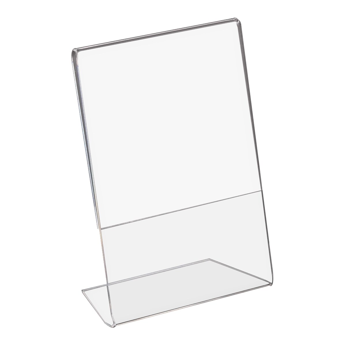 46953 Acryl Tischaufsteller schräg, L-Ständer, DIN A5 Hoch- und Querformat, Glasklar
