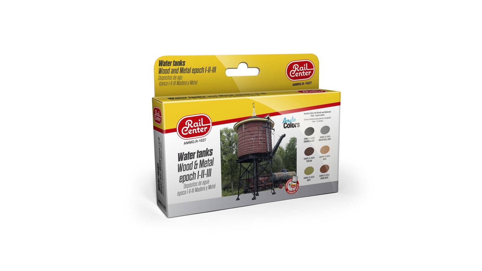 Ammo Rail Center AMMO.R-1027 - Wasserbehälter Holz & Metall, Farb-Set Epochen I-III, 6 Acrylfarben à 15 ml | Modellbahn | Modelleisenbahn