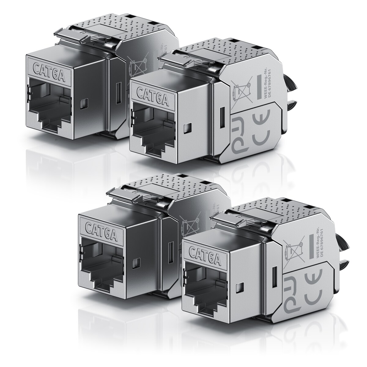 Primewire 4x Netzwerk-Adapter RJ-45 (Ethernet), Buchse zu Netzwerkkabel, CAT.6a Keystone Modul für LAN Kabel, RJ45 Buchse, feldkonfektionierbar