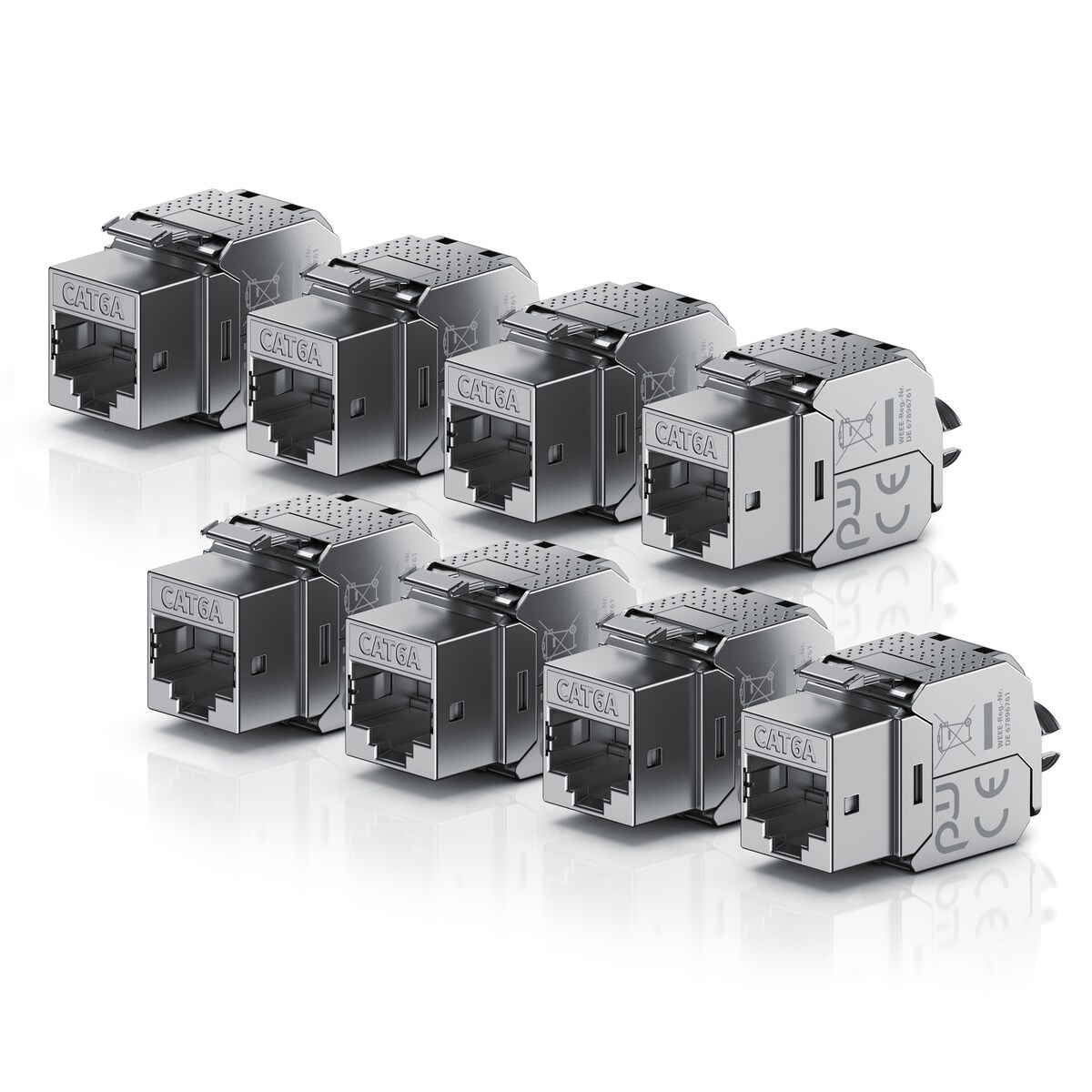 Primewire 8x Netzwerk-Adapter RJ-45 (Ethernet), Buchse zu Netzwerkkabel, CAT.6a Keystone Modul für LAN Kabel, RJ45 Buchse, feldkonfektionierbar