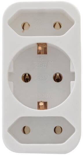 2 Stück EU Steckdosenadapter HAUSPROFI Mehrfachstecker Adapter Drei-Wege-Steckdose , 16 A 250 V, 2 Stück, 3 Steckplätze