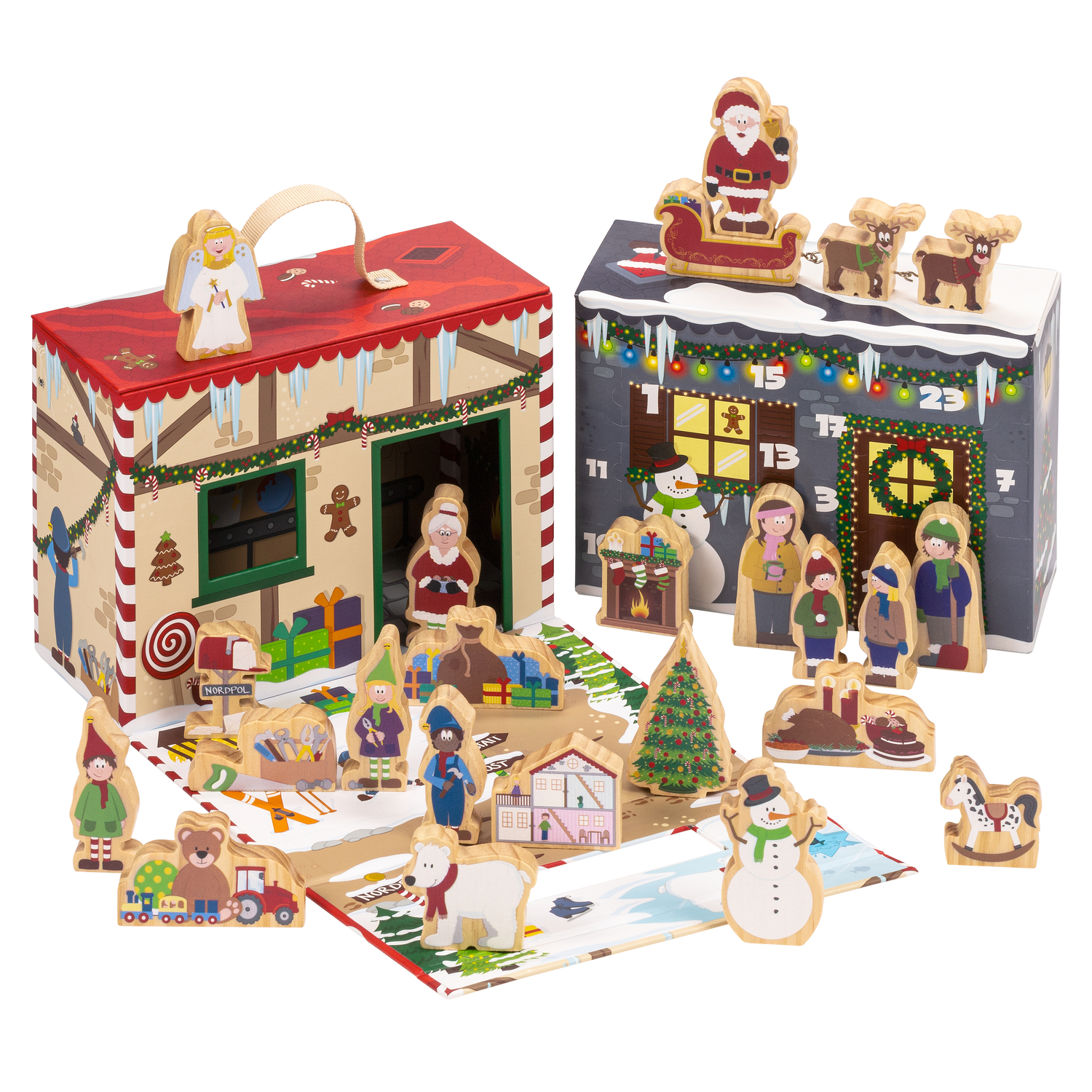 yoamo Wichtelwerkstatt Adventskalender mit Spielkoffer für Kinder mit Holzfiguren in hochwertigem Aufbewahrungs-Koffer, 27-teilig (1 Set)