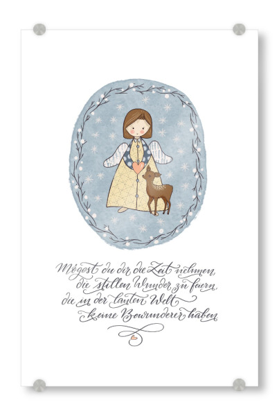 Acrylglasbild "Engel mit Reh und Spruch" artboxONE - Für Kinder,Weihnachten - Advent,Adventskalender,Kind,Weihnachten,Kinder,Kinderzimmer