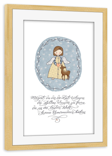 Poster mit Rahmen kiefer "Engel mit Reh und Spruch" artboxONE - Für Kinder,Weihnachten - Advent,Adventskalender,Kind,Weihnachten,Kinder,Kinderzimmer
