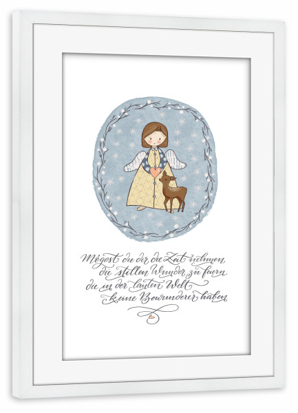 Poster mit Rahmen weiß "Engel mit Reh und Spruch" artboxONE - Für Kinder,Weihnachten - Advent,Adventskalender,Kind,Weihnachten,Kinder,Kinderzimmer