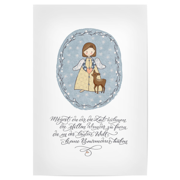 Poster 30x20 cm "Engel mit Reh und Spruch" artboxONE - Für Kinder,Weihnachten - Advent,Adventskalender,Kind,Weihnachten,Kinder,Kinderzimmer
