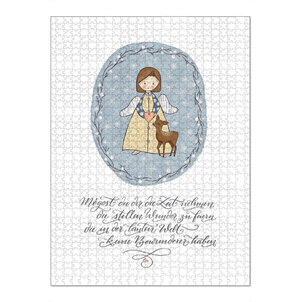 Puzzle Ravensburger "Engel mit Reh und Spruch" artboxONE - Für Kinder,Weihnachten - Advent,Adventskalender,Kind,Weihnachten,Kinder,Kinderzimmer