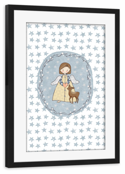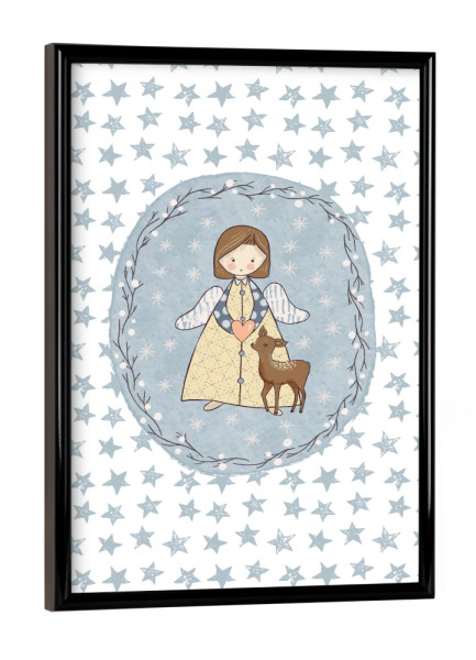 Poster mit schwarzem Rahmen "Engel mit Reh" artboxONE - Für Kinder,Weihnachten - Advent,Adventskalender,Kind,Kinderzimmer,Weihnachten