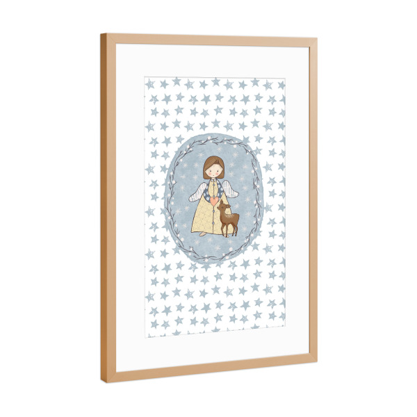 Poster mit Rahmen Kupfer "Engel mit Reh" artboxONE - Für Kinder,Weihnachten - Advent,Adventskalender,Kind,Kinderzimmer,Weihnachten