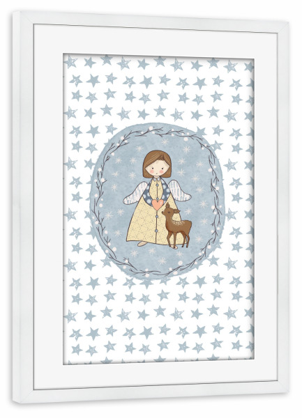 Poster mit Rahmen weiß "Engel mit Reh" artboxONE - Für Kinder,Weihnachten - Advent,Adventskalender,Kind,Kinderzimmer,Weihnachten