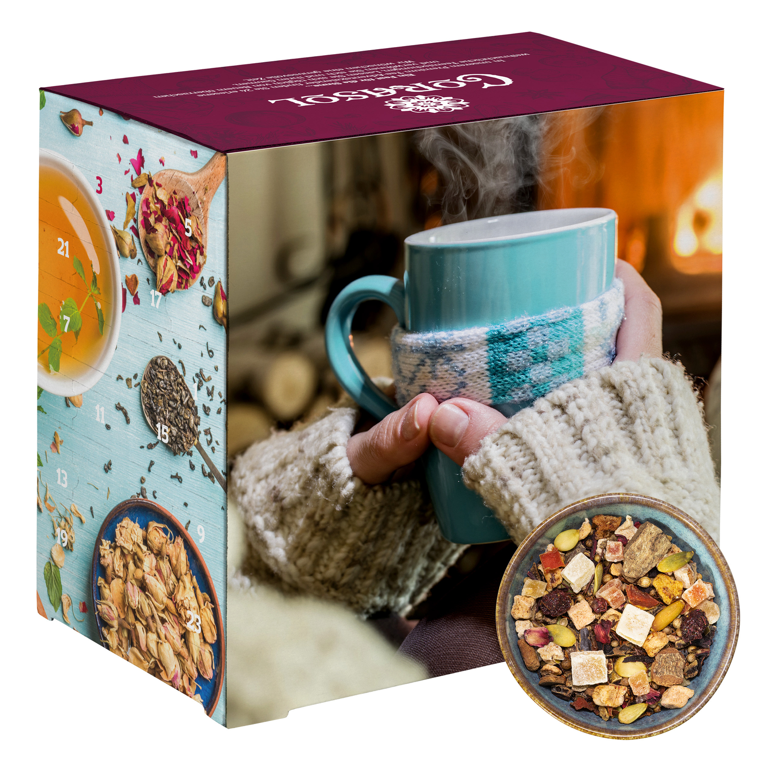 Corasol Premium Tee-Adventskalender mit 24 weihnachtlichen Gourmet-Teesorten, loser Tee, Geschenk-Idee für Frauen (223 g)
