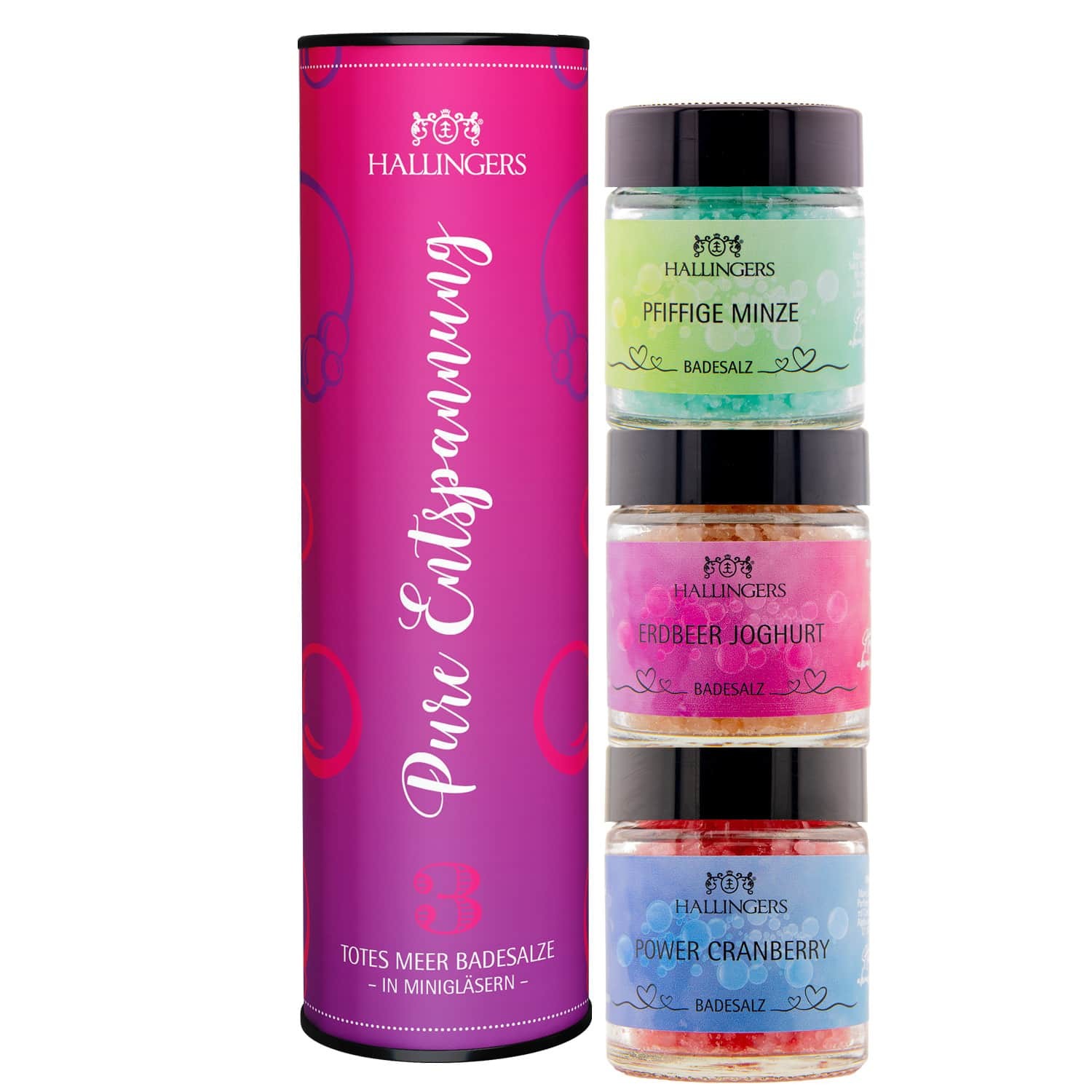 Badesalz Geschenkset – 3 Badezusätze mit Totes Meer Salz in edler Geschenkdose, Wellness & Spa für Frauen, feine Geschenkidee, auch für Adventskalende