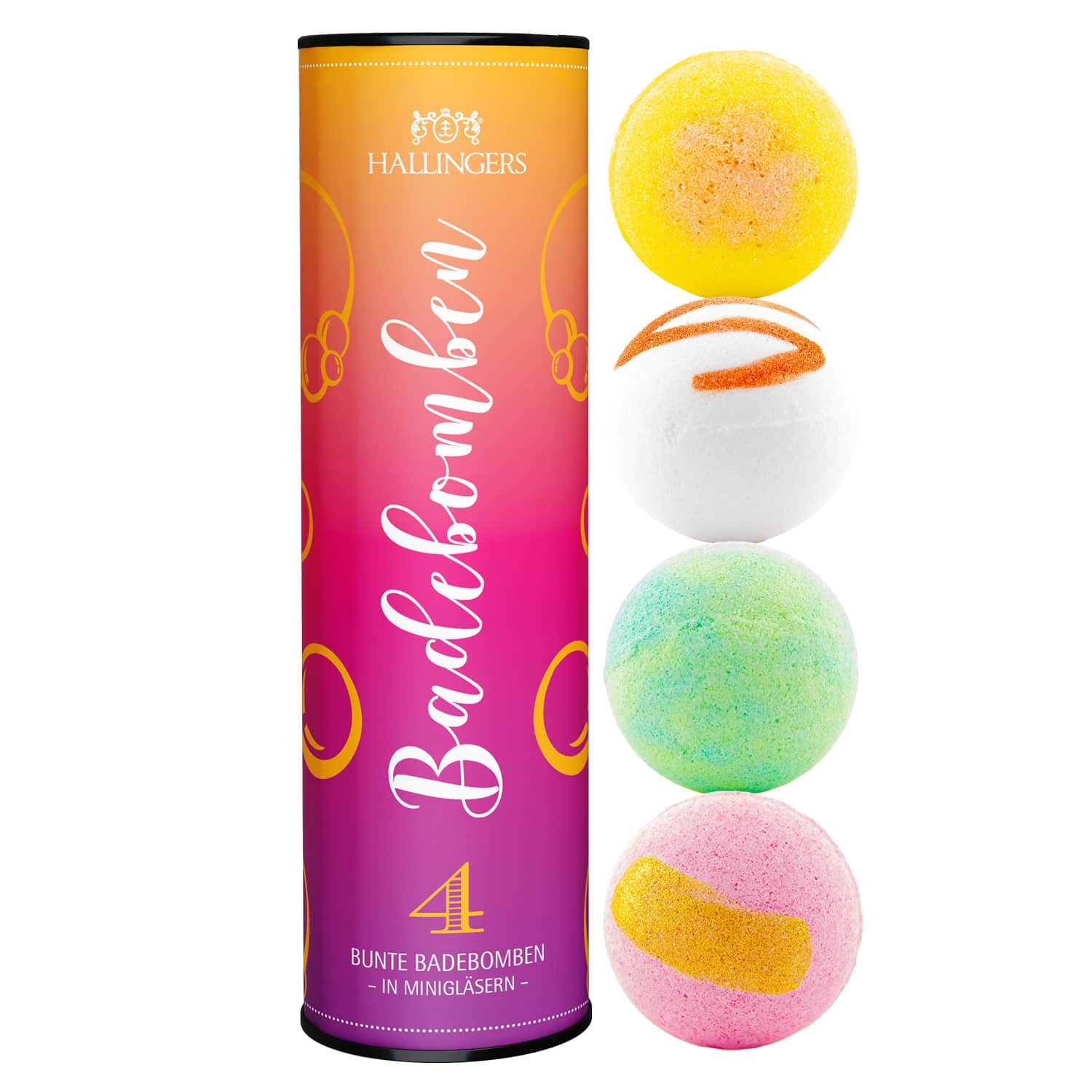 Badebomben Geschenkset – 4 Badekugeln in der Geschenkdose, Wellness & Spa für Frauen, aromatisches Badeset, Geschenkidee, auch für Adventskalender, Ba