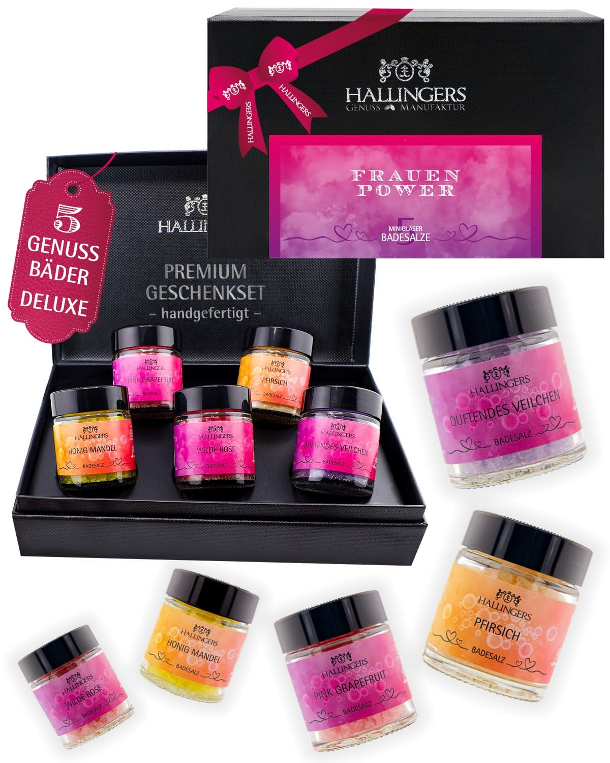 Badesalz Geschenkset – 5 Badezusätze mit Totes Meer Salz, Premium Wellness & Spa Set für Frauen, vegan, sanfte Geschenkidee, auch für Adventskalender