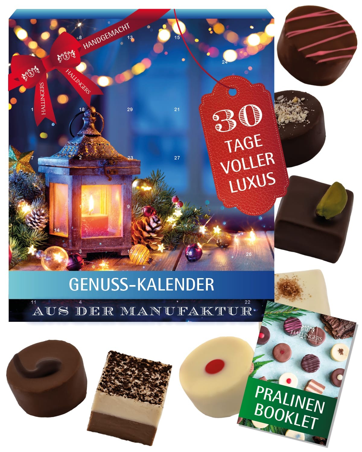 Pralinen Adventskalender ohne Alkohol – 30 handgemachte Premium Schoko Pralinen aus Edelkako - Süßigkeiten Geschenk Familie Kinder Erwachsene - 30 Tag