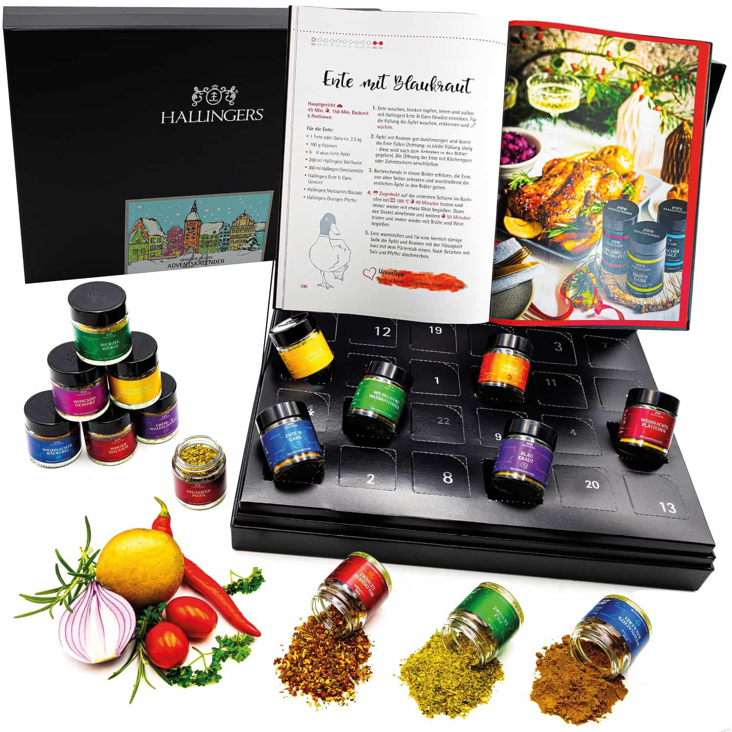 Gewürz Adventskalender – 24 Gewürze & Kochbuch & Gewürzmischungen aus aller Welt, Kochen Grillen Würzen Set, Geschenkidee für Männer Frauen, Premium W