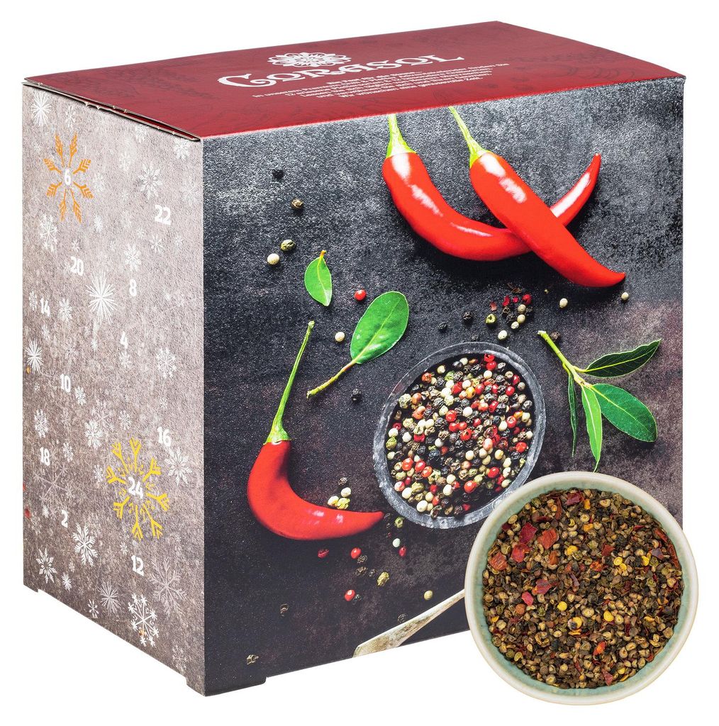 Corasol Premium Chili & Pfeffer Adventskalender mit 12 Chili & 12 Pfeffersorten, die Gewürz Gourmet Geschenkidee für Männer (149 g)