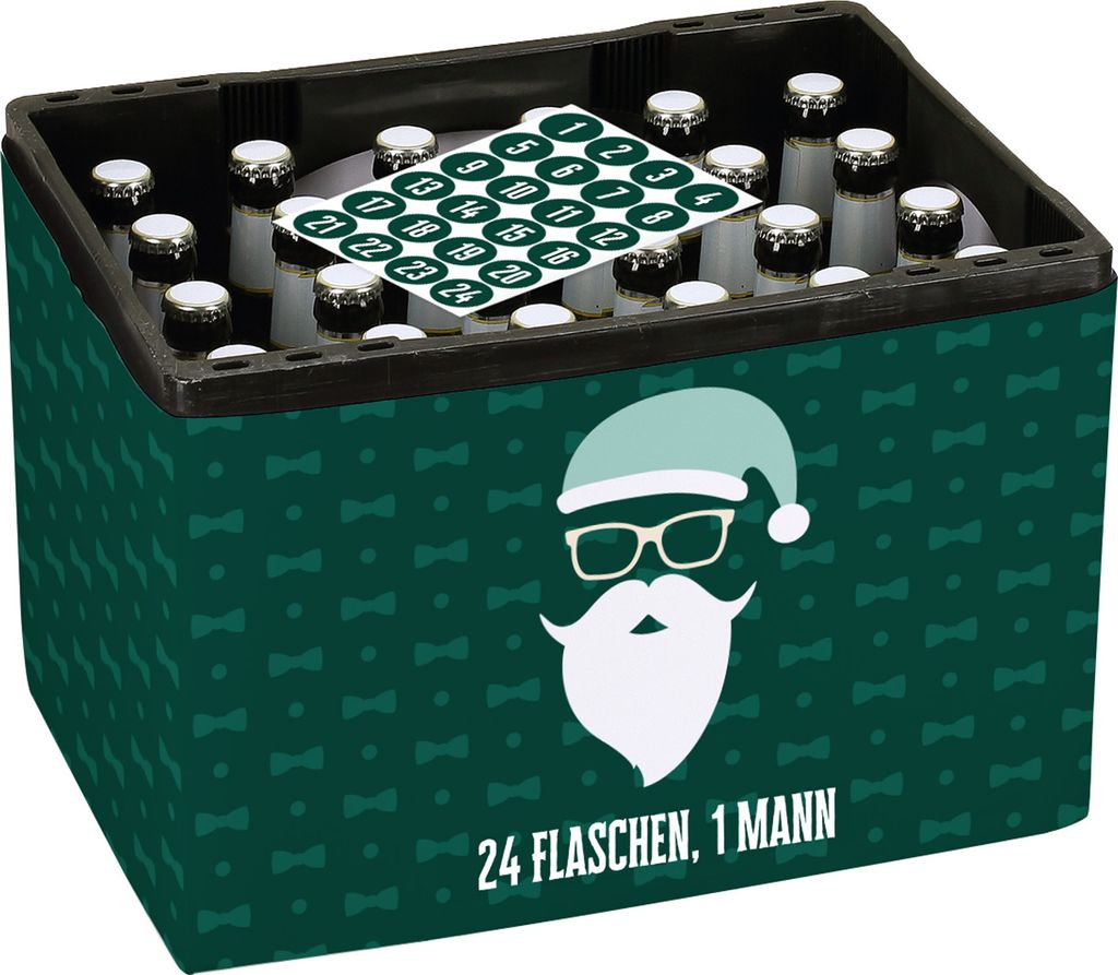 Bierkastenbanderole als Adventskalender für Männer - Motiv "24 Flaschen 1 Mann"