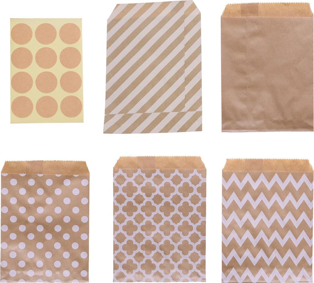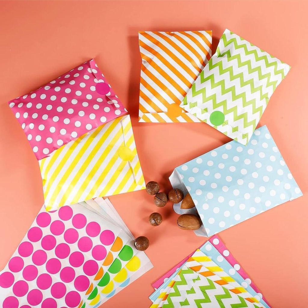 Bunte Butterbrottüten aus Papier - 50 Stück | Kleine Geschenkbeutel für Kindergeburtstag und Adventskalender | Geschenkbeutel mit 175 Aufklebern