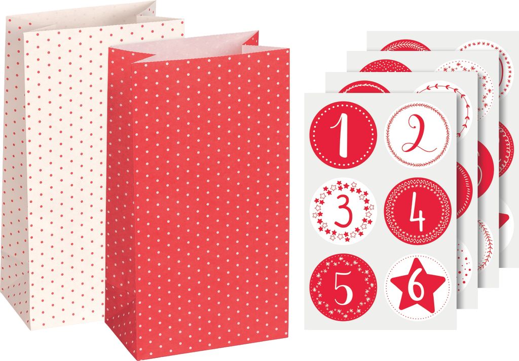 Adventskalender Tüten zum Befüllen 8x6,5x21cm Papier Set