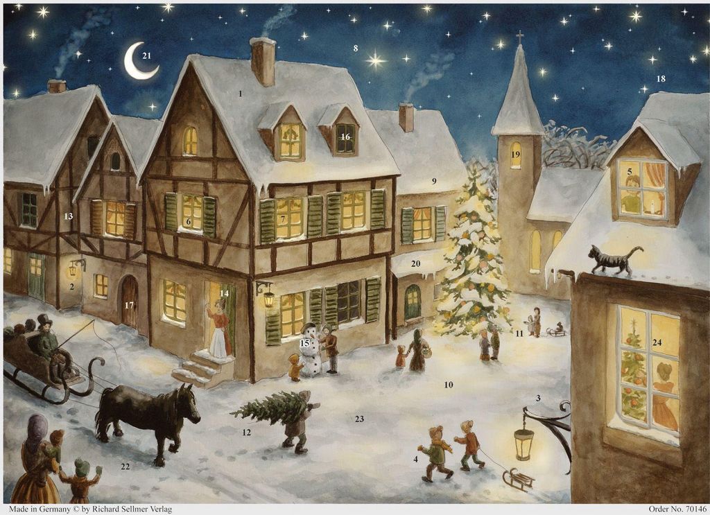 Adventskalender Weihnachtsabend im Dorf, nostalgisch, Papier, 29,7x21cm
