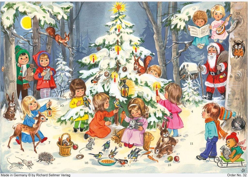 Adventskalender aus Papier im A4-Format mit Kinder-Motiven