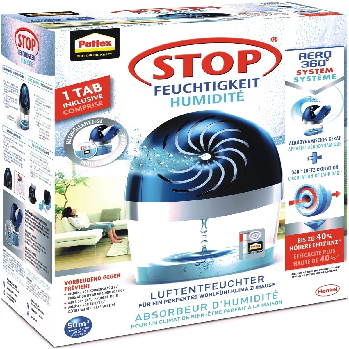 Pattex Luftentfeuchter Aero 360° Gerät, Faltschachtel, 1x1 Stück
