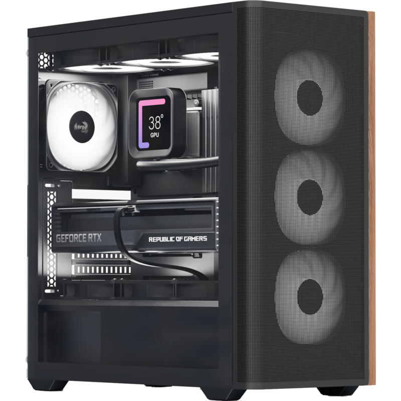 Aerocool D501A-G-BK-v2 Tower-Gehäuse, schwarz/holz