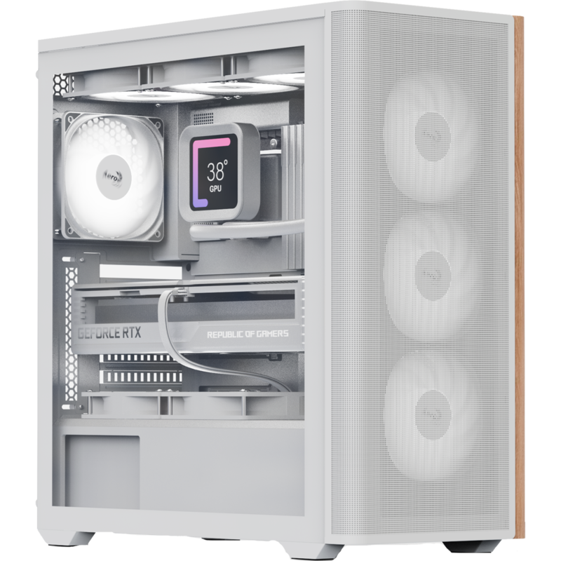Aerocool D501A-G-WT-v2 Tower-Gehäuse, weiß/holz