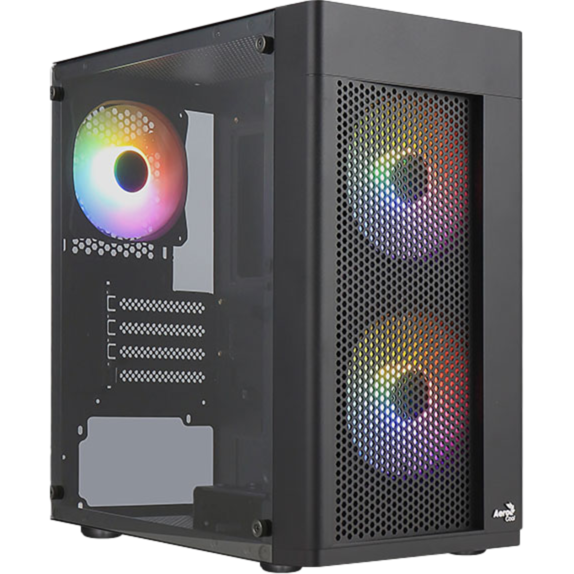PC Gehäuse AEROCOOL Hexform G v2, Mini Tower, Micro-ATX, 3x12cm RGB Lüfter, Tempered Glass, Schwarz