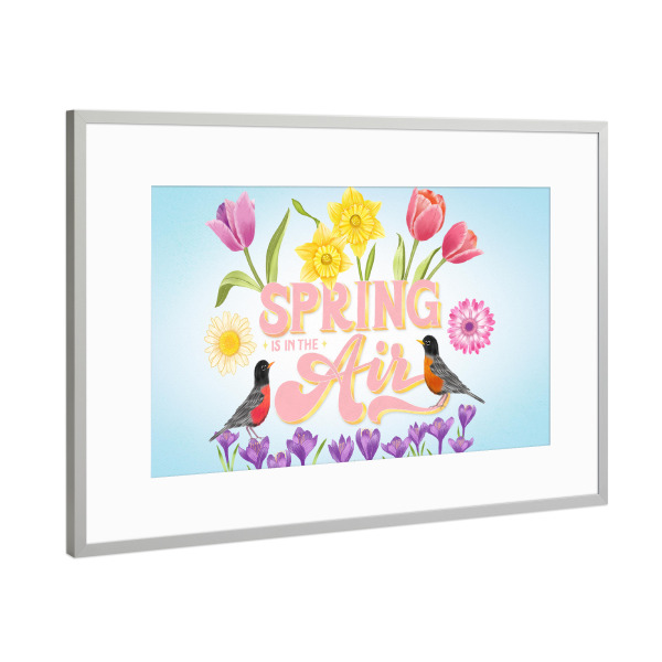 Poster mit Rahmen Silber "Spring is in the Air" artboxONE - Typografie,Floral,Tiere