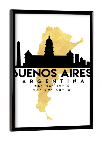 Poster mit schwarzem Rahmen "BUENOS AIRES ARGENTINA SKYLINE MAP" artboxONE - Städte,Reise,Kartografie