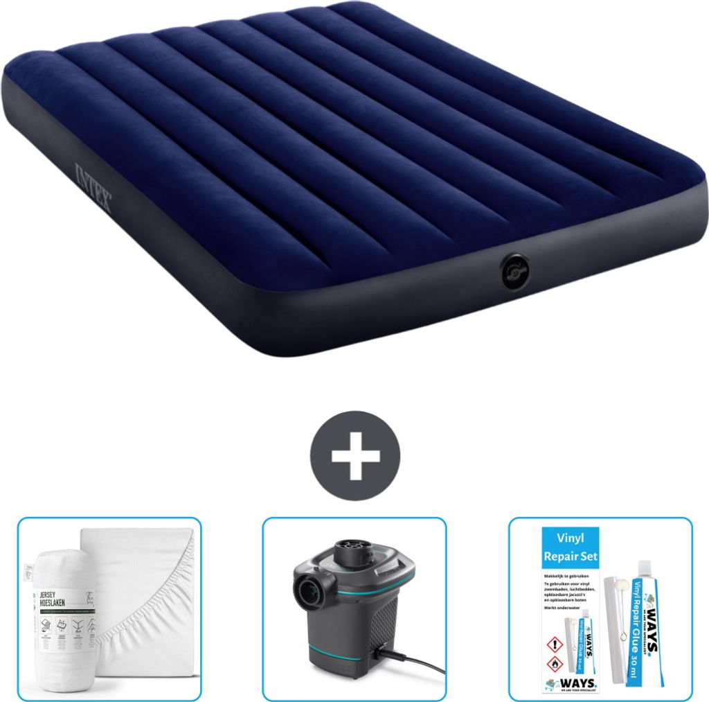 Intex Airbed - Doppelbett - 137 x 191 x 22 cm - Blau - Inklusive Pumpe - Spannbettuch en Reperaturset