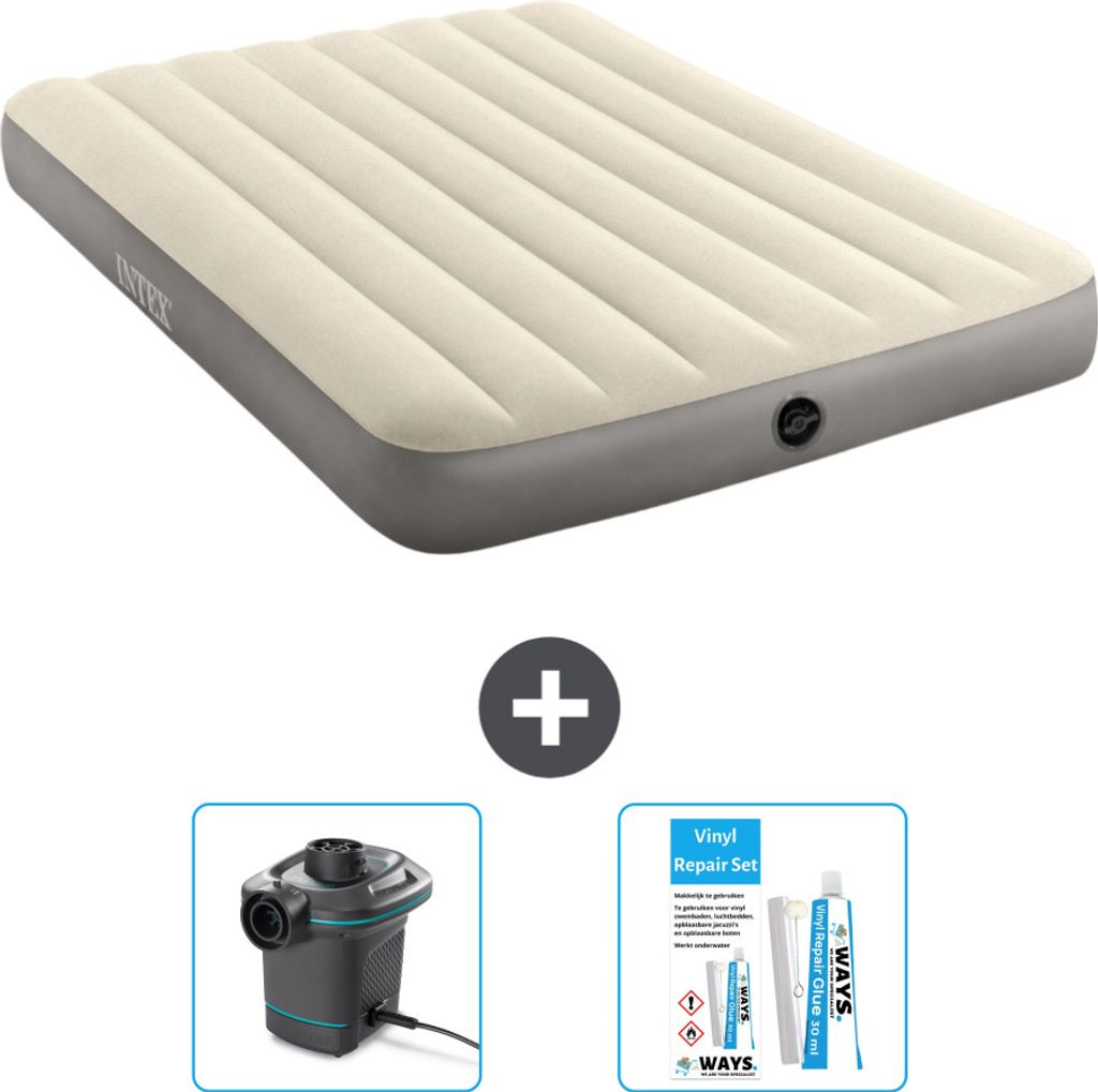 Intex Airbed - Doppelbett - 137 x 191 x 46 cm - Grau - Inklusive Pumpe - Spannbettuch en Reperaturset