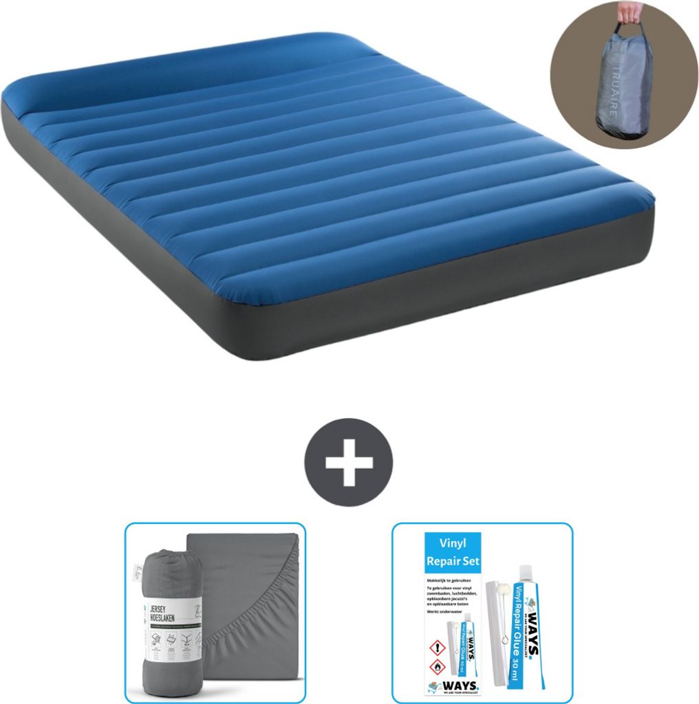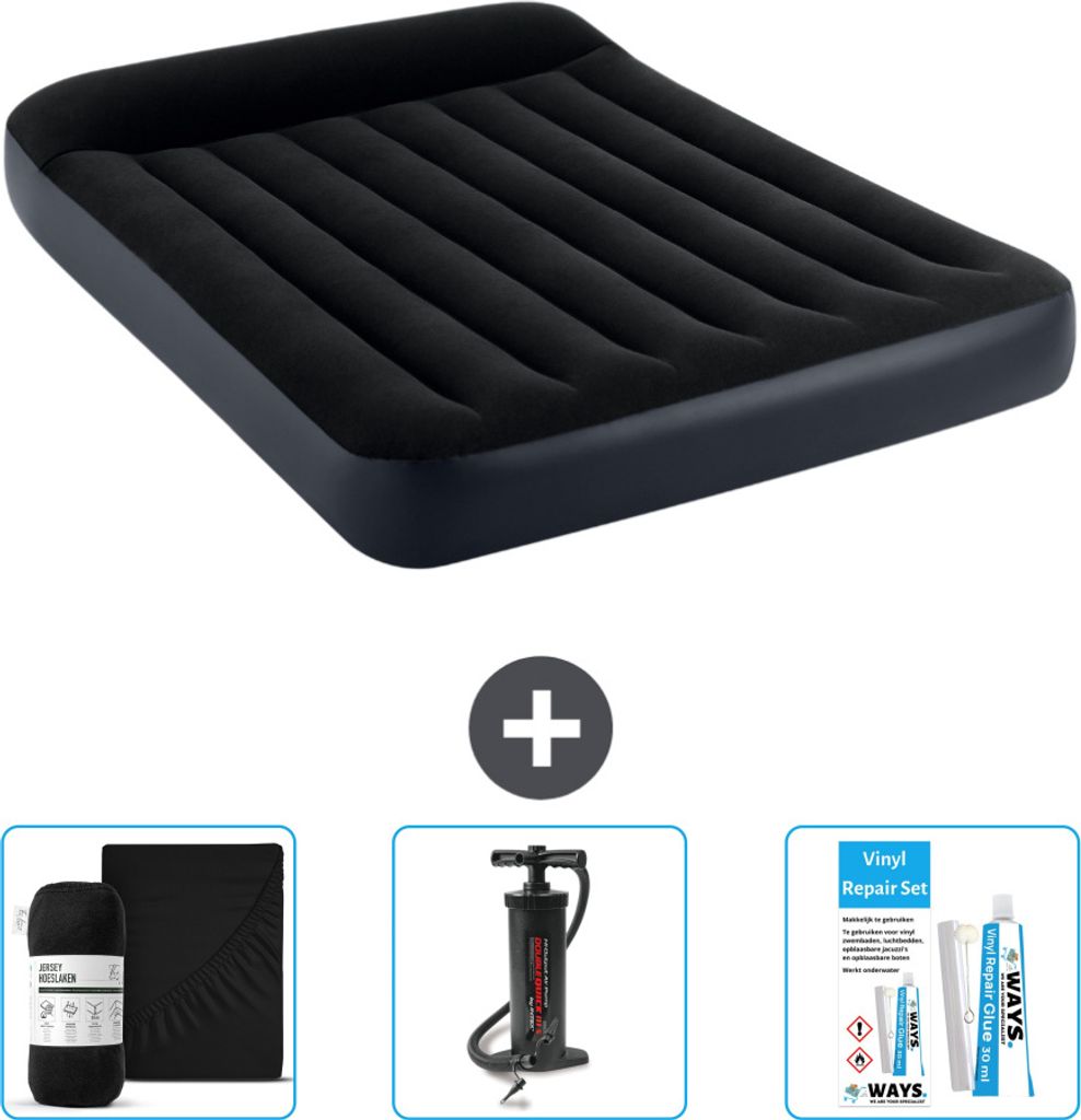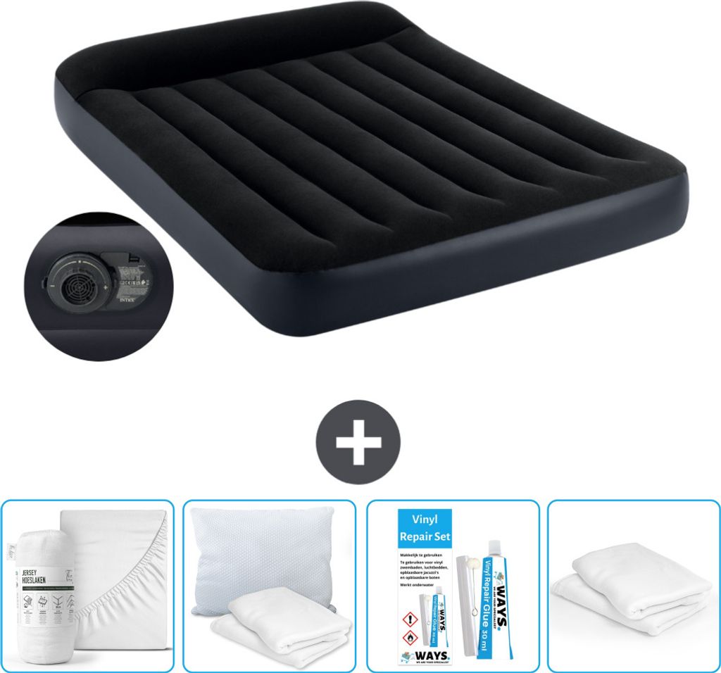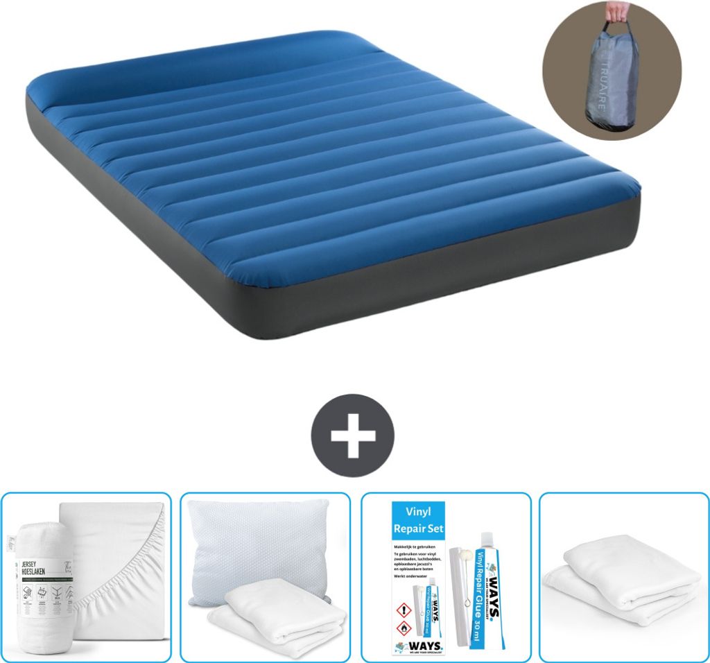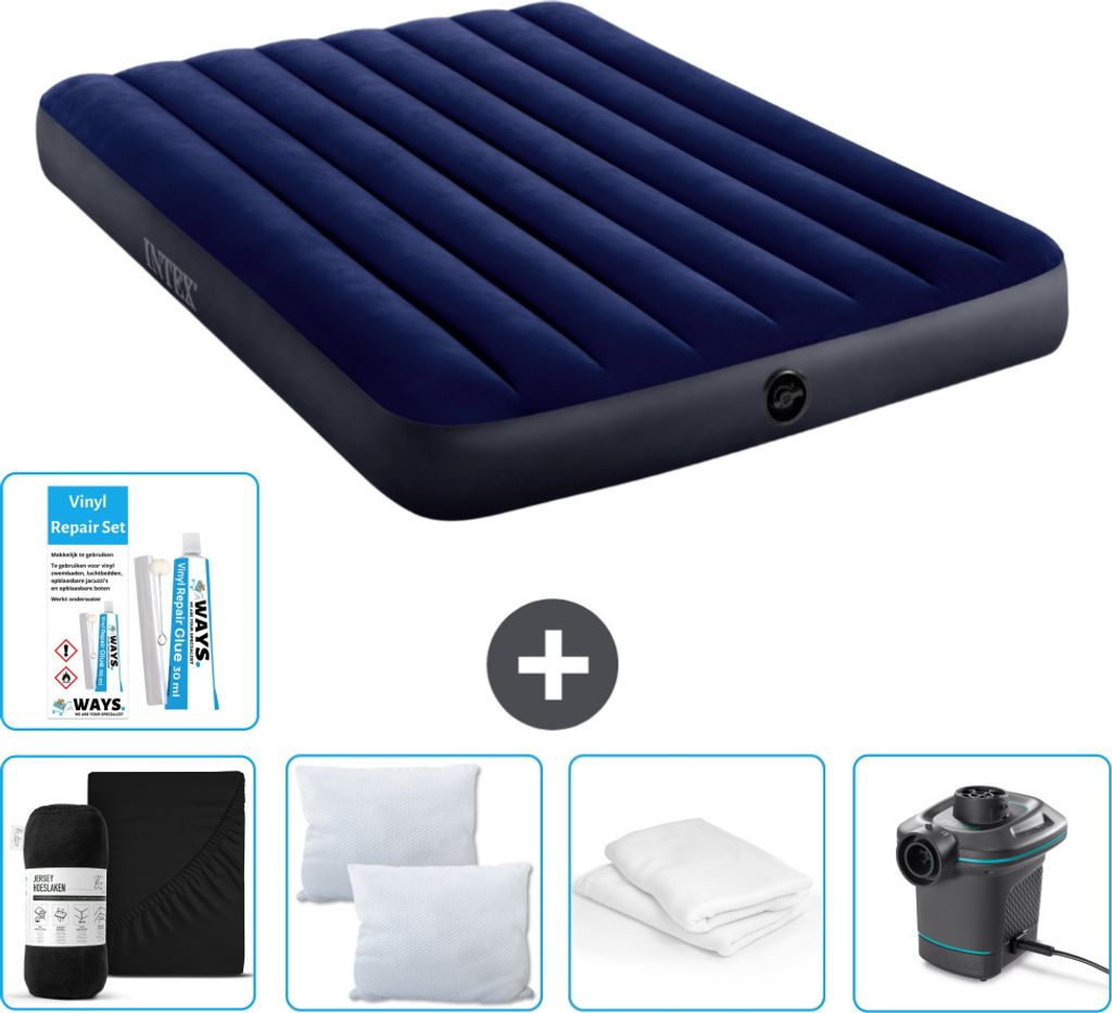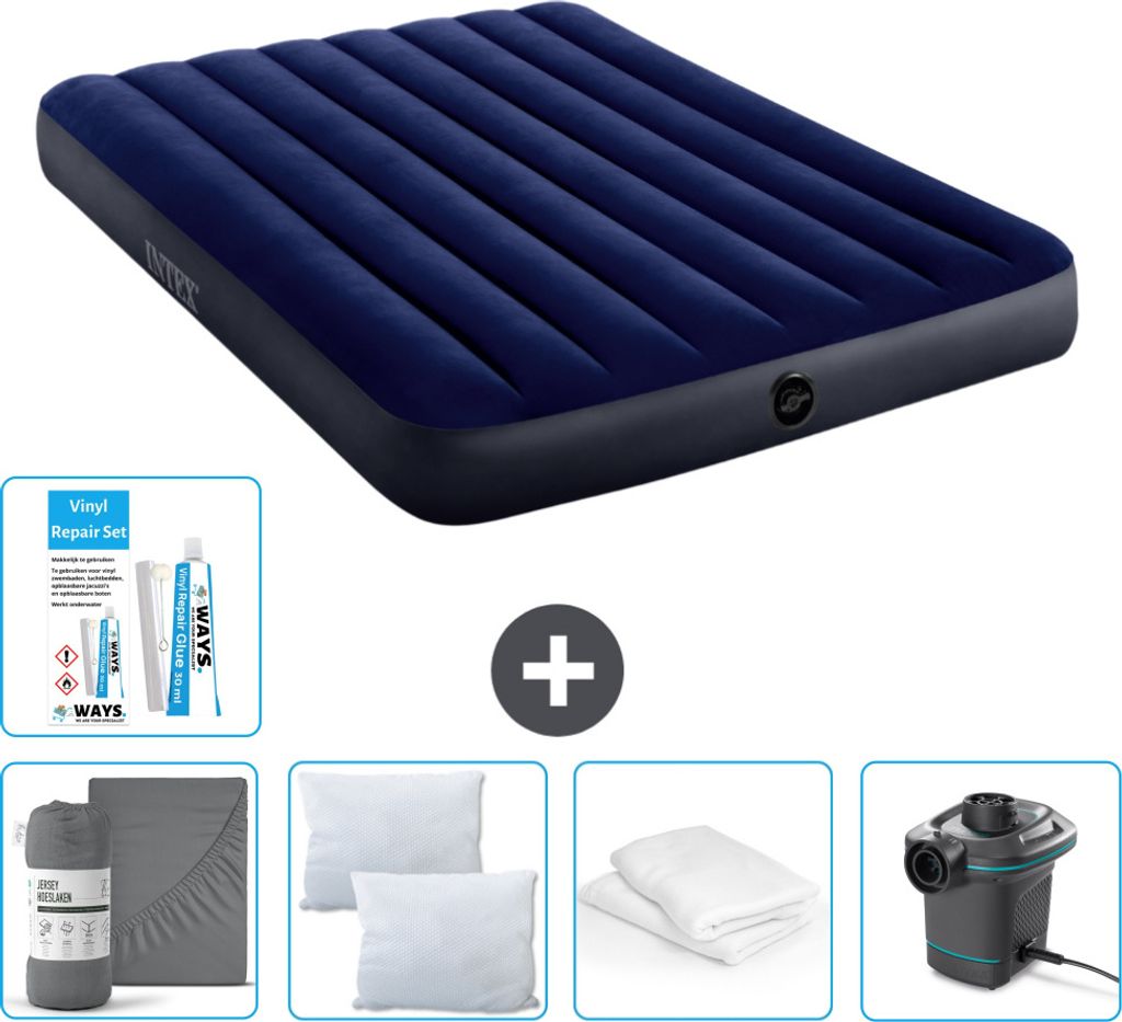 Intex Airbed - Doppelbett - 137 x 191 x 25 cm - Blau - Inklusive Pumpe - Spannbettuch - Küssen - Reperaturset en Kissenschutz