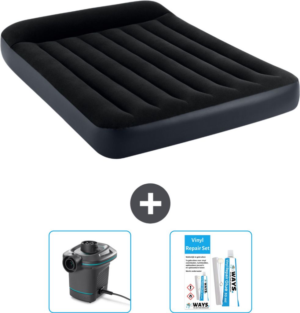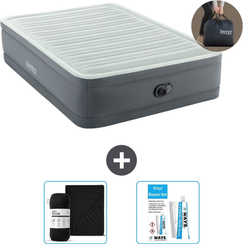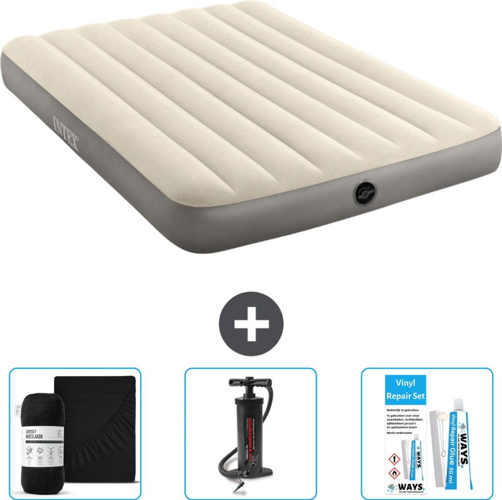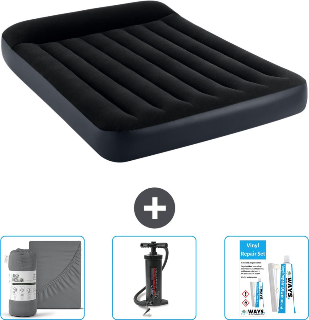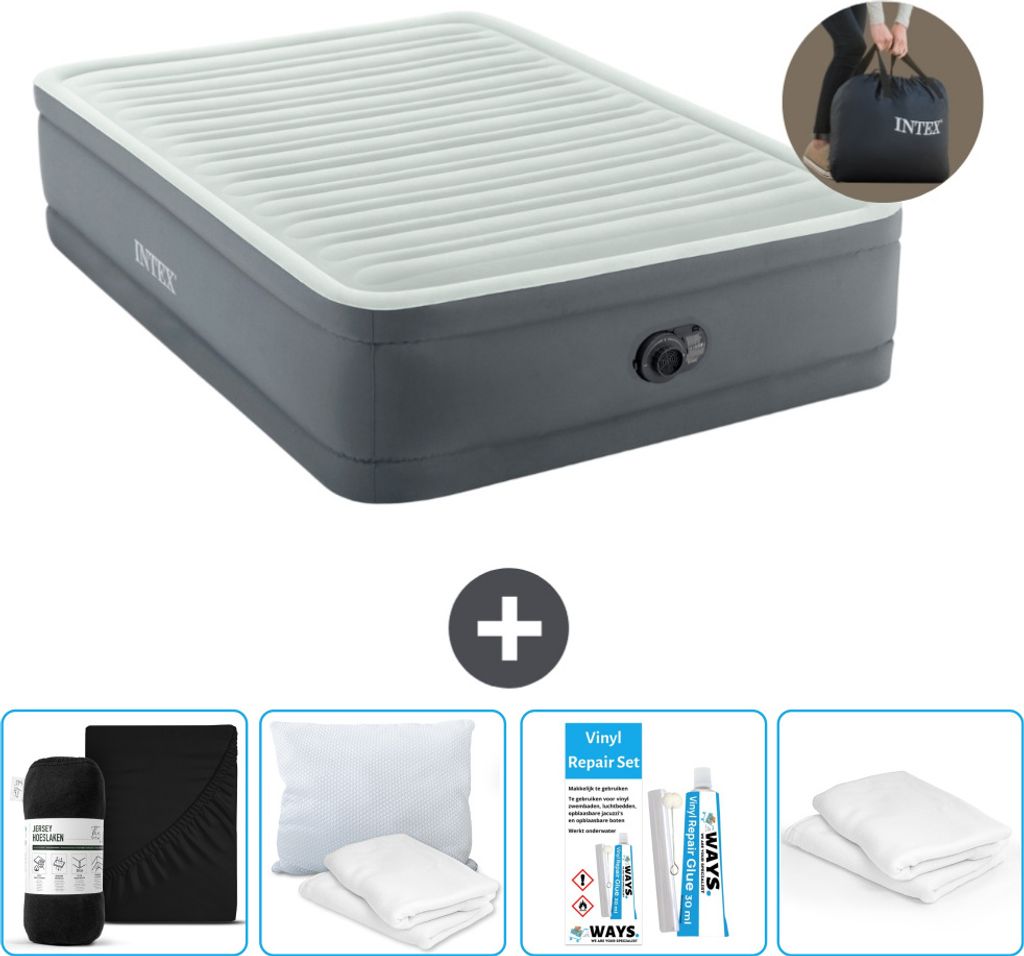 Intex Airbed - Doppelbett - 137 x 191 x 46 cm - Grau - Inklusive Pumpe - Spannbettuch - Küssen - Reperaturset en Kissenschutz