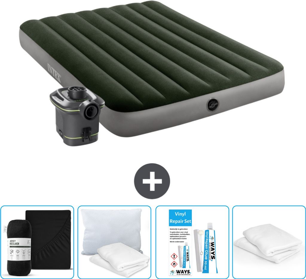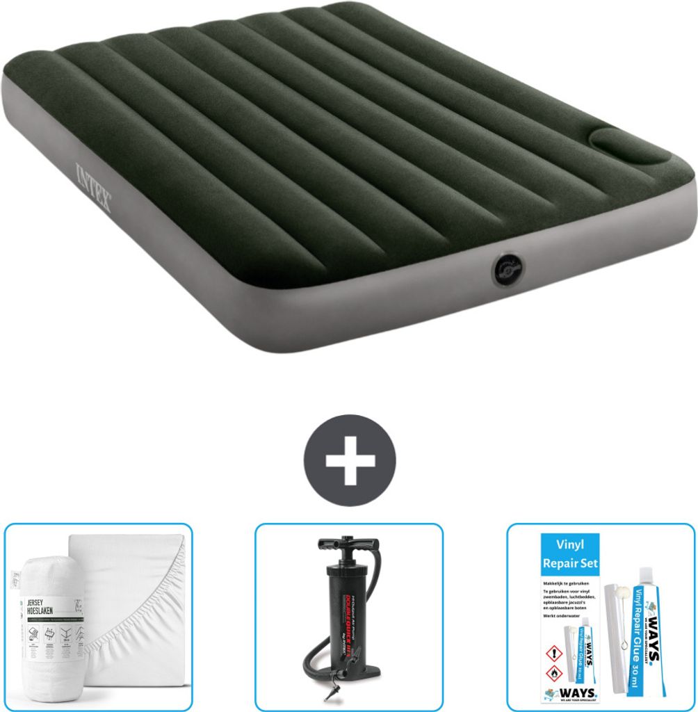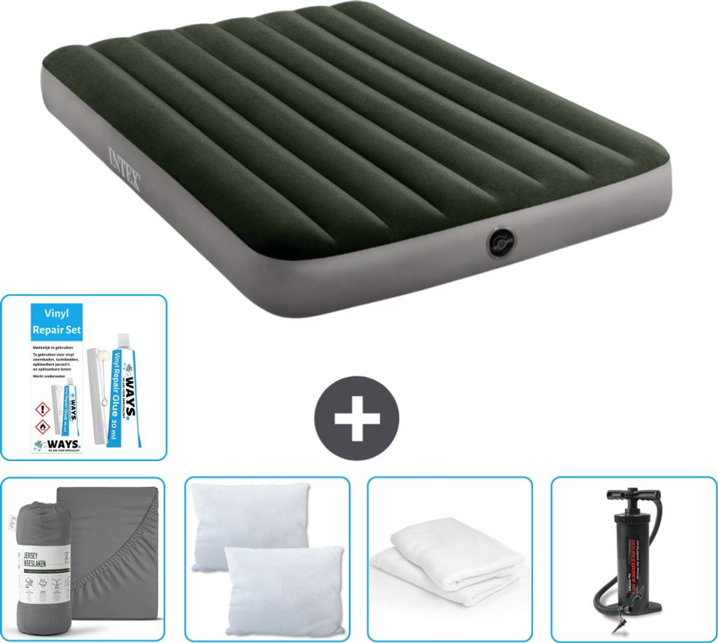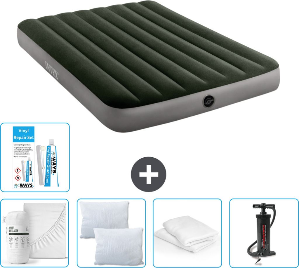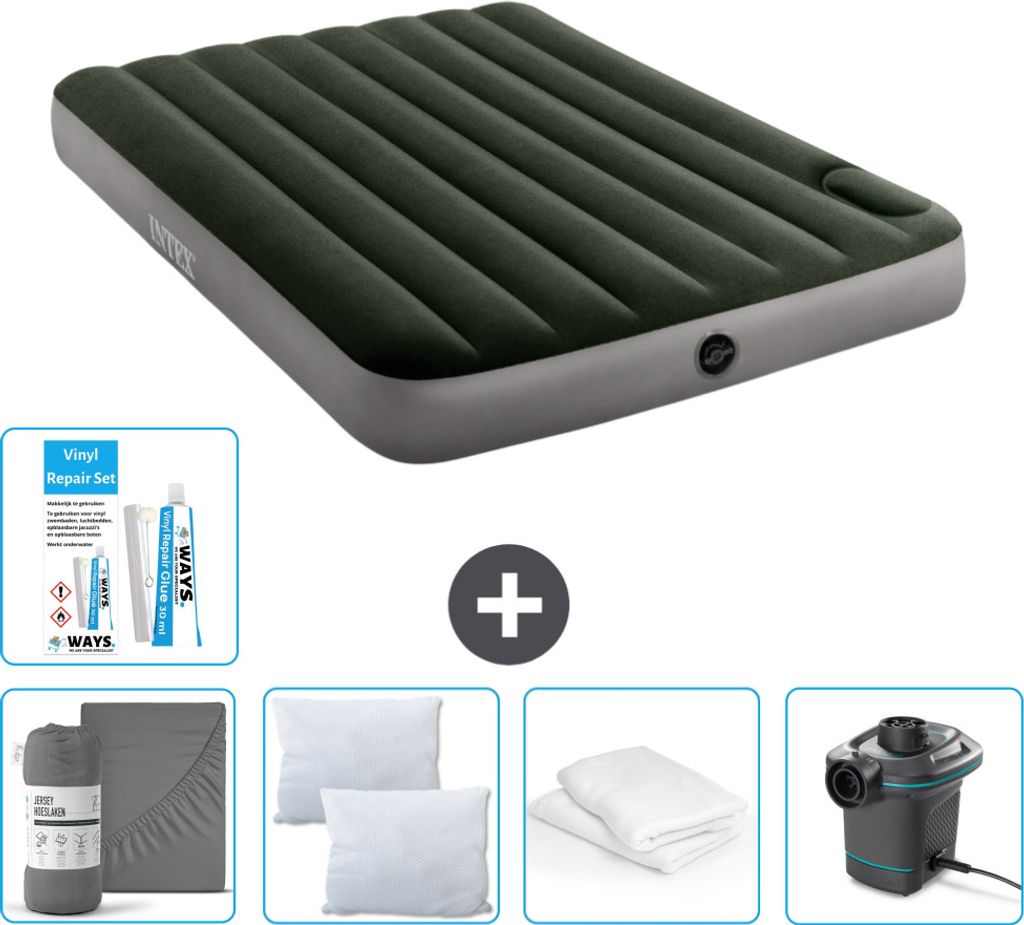 Intex Airbed - Doppelbett - 137 x 191 x 25 cm - Grün - Inklusive Pumpe - Spannbettuch - Küssen - Reperaturset en Kissenschutz