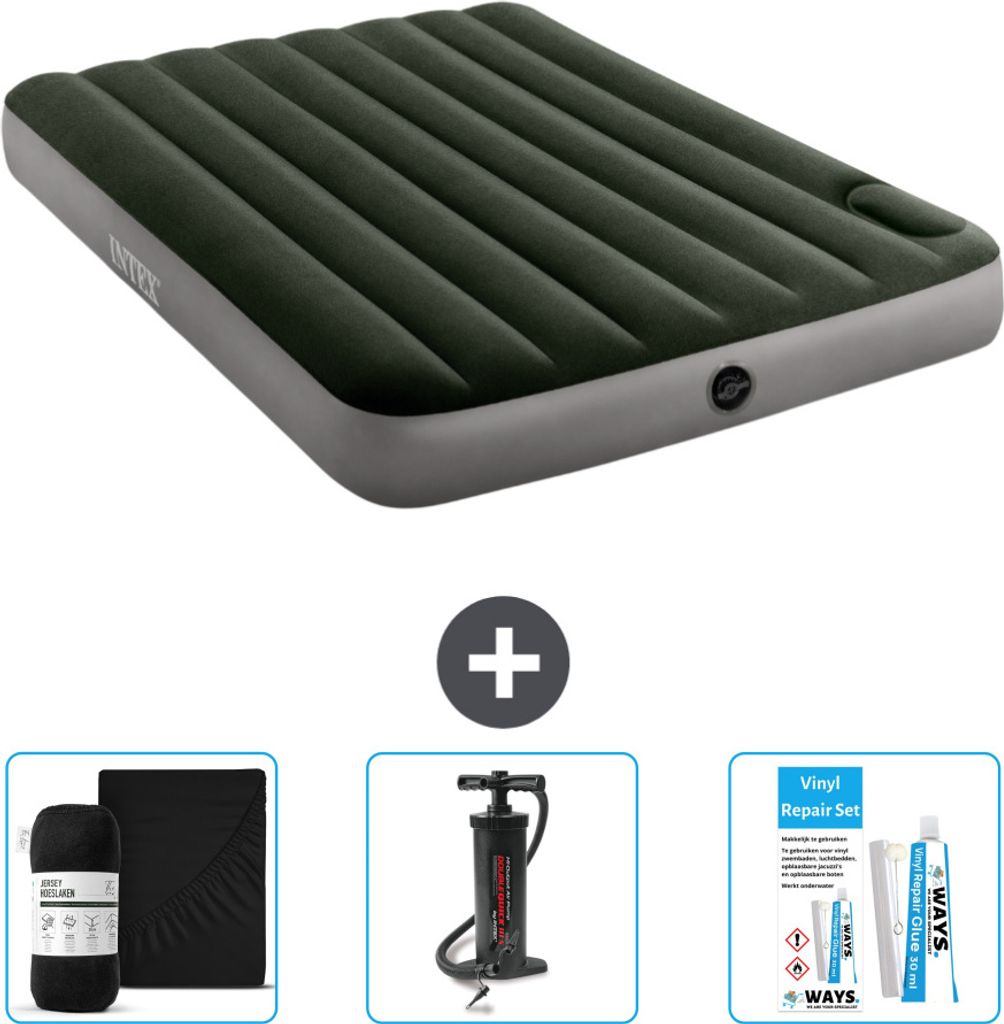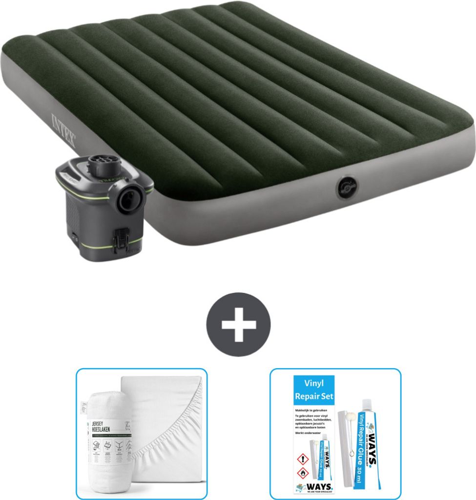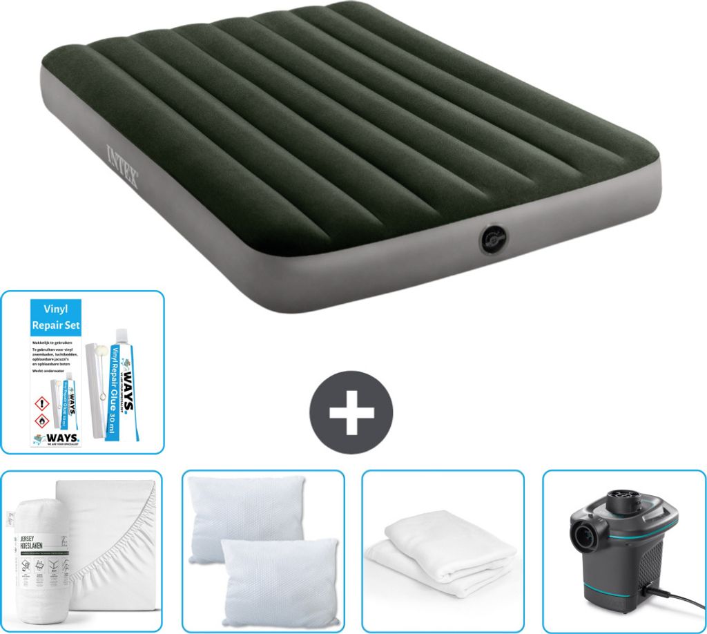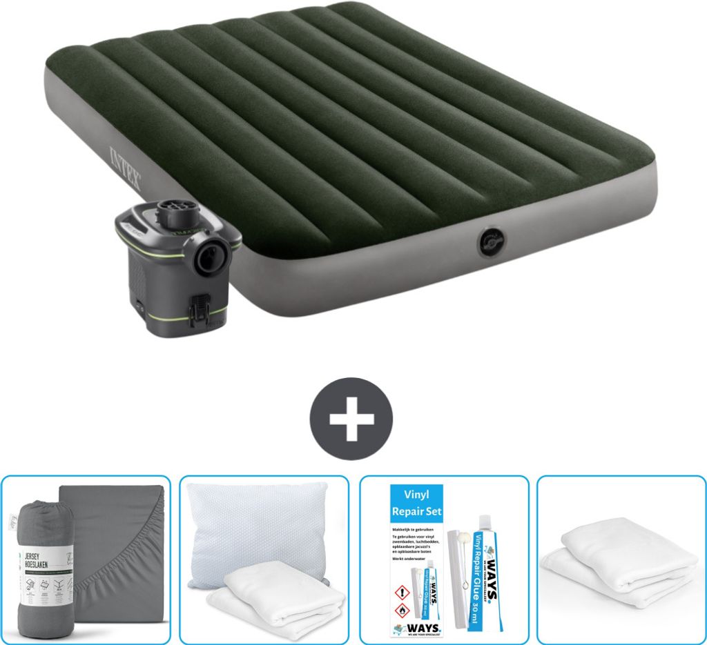 Intex Airbed - Doppelbett - 137 x 191 x 25 cm - Grün - Inklusive Pumpe - Spannbettuch - Küssen - Reperaturset en Kissenschutz