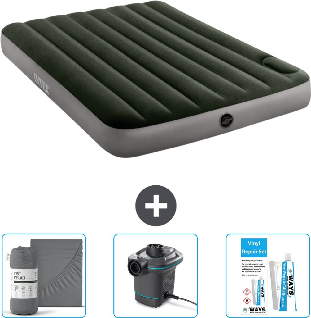 Intex Airbed - Doppelbett - 137 x 191 x 25 cm - Grün - Spannbettuch - Pumpe en Reperaturset