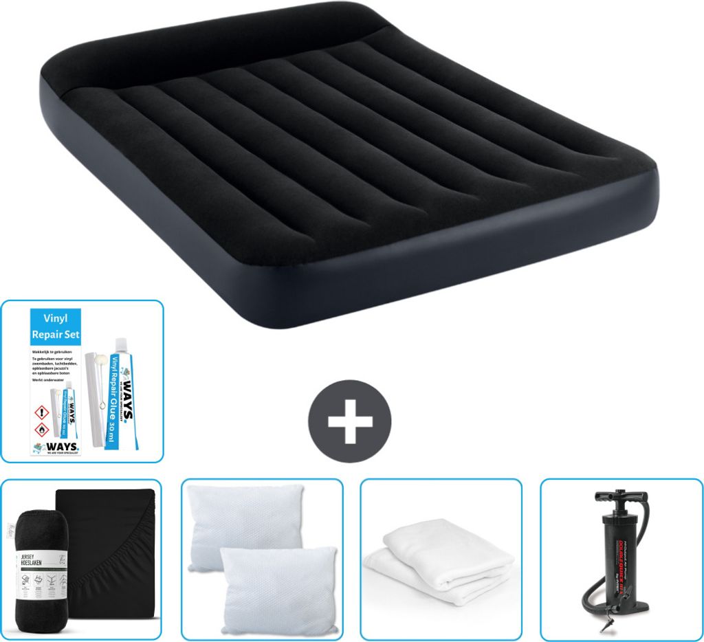 Intex Airbed – Doppelbett – 137 x 191 x 25 cm – Dunkelblau – Im Lieferumfang enthalten Spannbettuch - Küssen - Pumpe - Reperaturset en Kis...