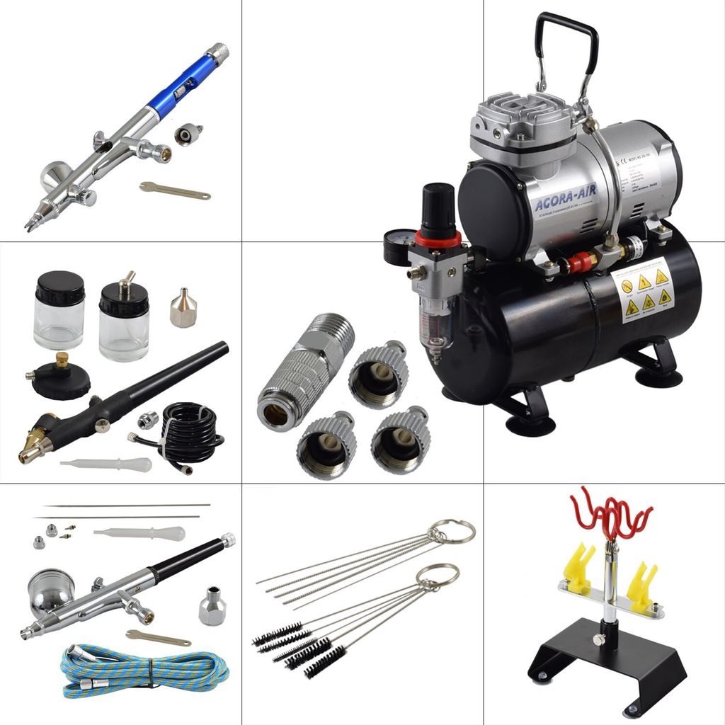 Airbrush Komplett Set Mini Air Kompressor AS18B Spritzpistole ABC 180