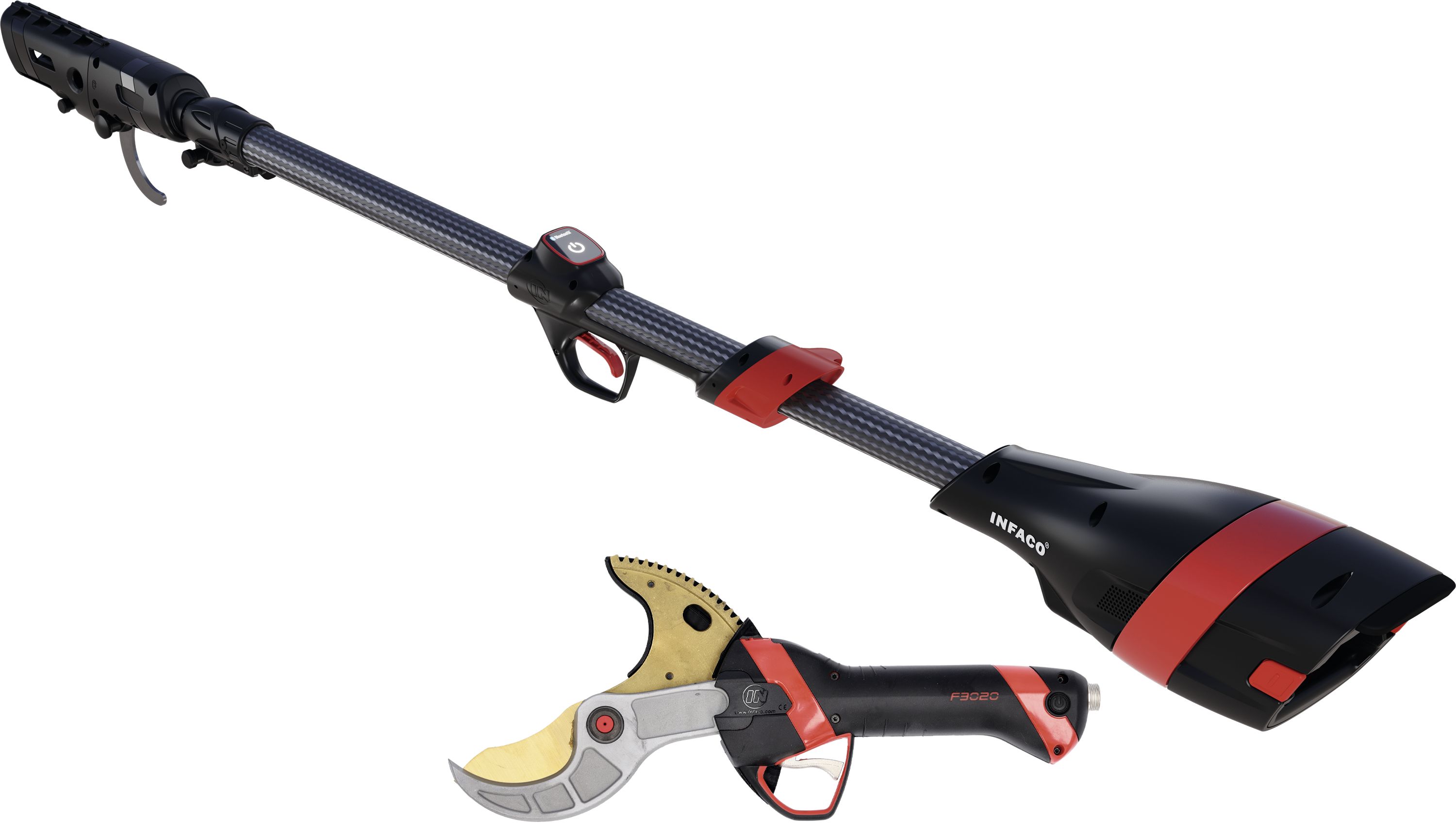 INFACO Akku-Astschere "Electrocoup F3020" Medium, mit Verlängerung 247 – 402 cm, Kabel für Äste bis 45 mm, F3020M/P9T210