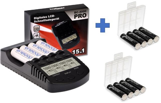 XCell BC-4000 Pro Akku & USB Ladegerät + 4x AAA 930mAh + 4x 2550mAh Akkus + 2 Box