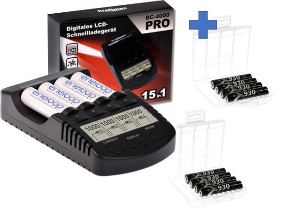 XCell Kraftmax BC-4000 Pro Akku & USB Ladegerät + 4x LSD Plus Micro AAA 930mAh Akkus + Box