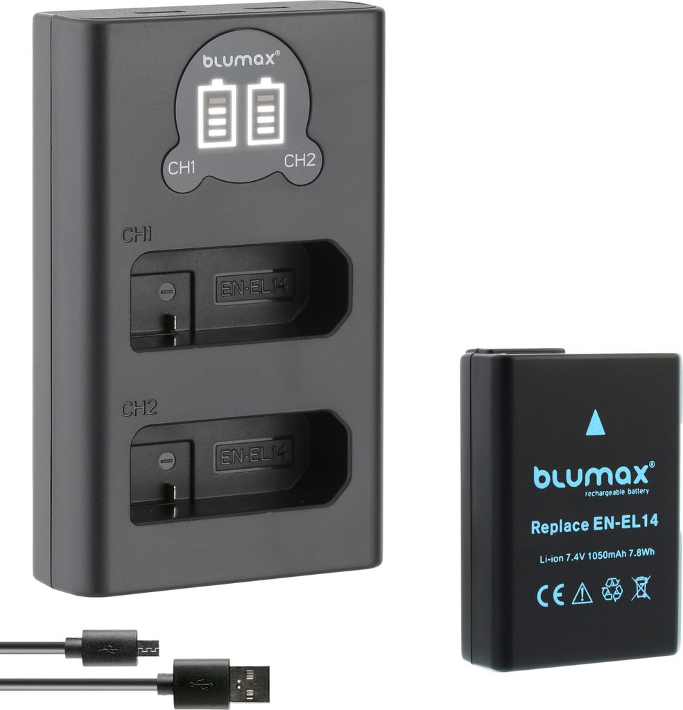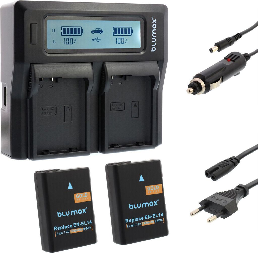 2x Blumax Akku | für Nikon EN-EL14 Digitalkamera | Kapazität 1050mAh |Spannung 7,4Volt | Video- und Kamerazubehör