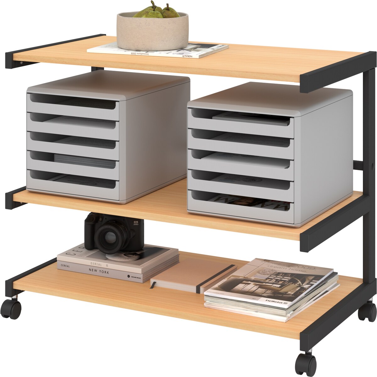 bümö Bürowagen mit Rollen als fahrbare Ablage von Aktenordner & Co in buche/schwarz