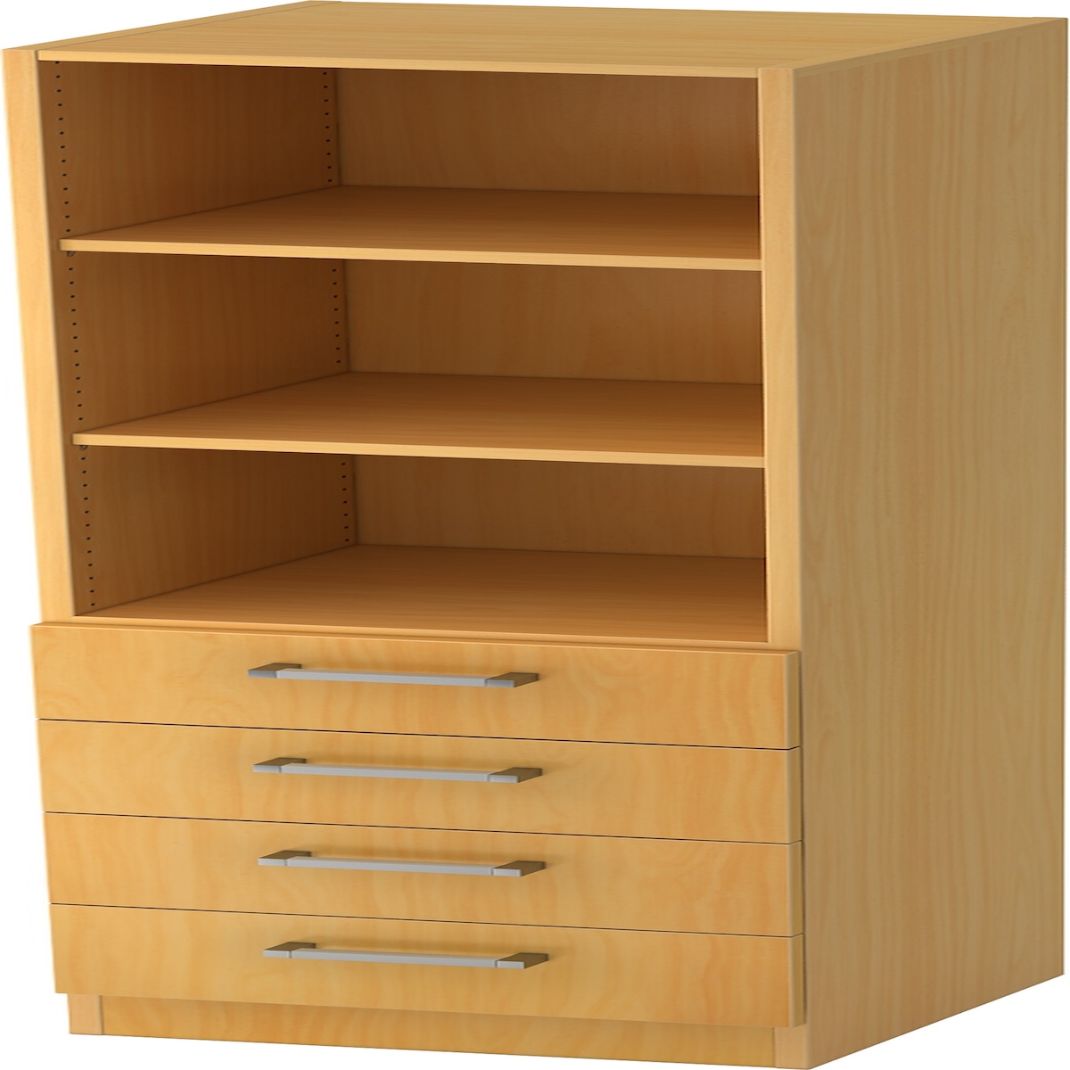 bümö office Aktenschrank Regal mit Schubladen, Büroschrank schmal aus FSC-Holz, 40cm breit in Buche - Aktenregal & Schubladenschrank mit