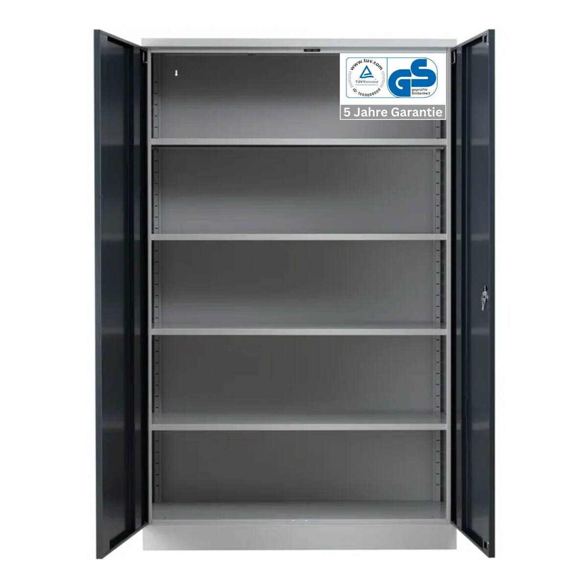 PROREGAL Stahlschrank BEE mit 4 lackierten Fachböden | HxBxT 195x120x42cm | Grau-Anthrazit | Werkstattschrank Werkzeugschrank Aktenschrank