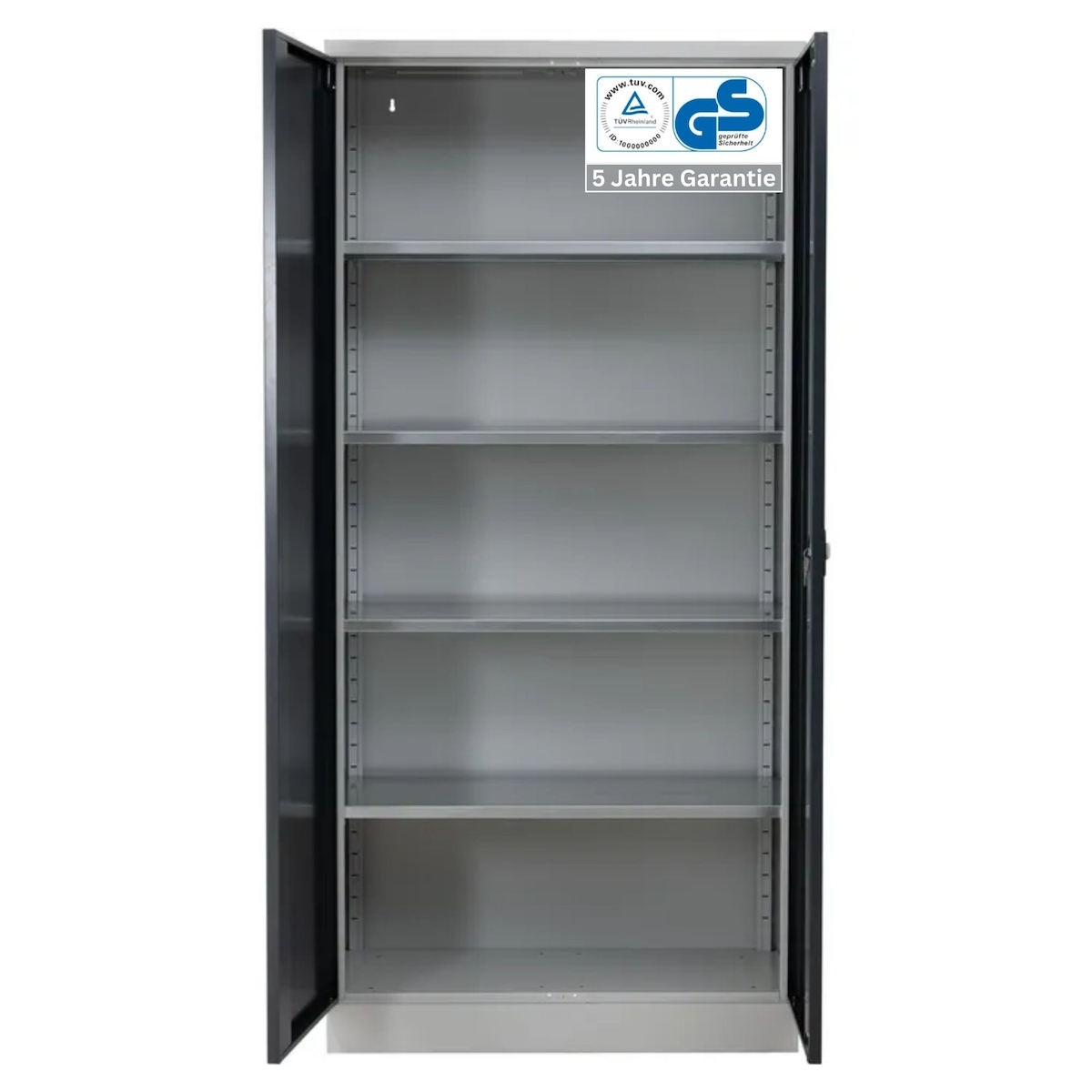 PROREGAL Stahlschrank BEE mit 5 verzinkten Fachböden | HxBxT 195x92x42cm | Grau-Anthrazit | Werkstattschrank Werkzeugschrank Aktenschrank