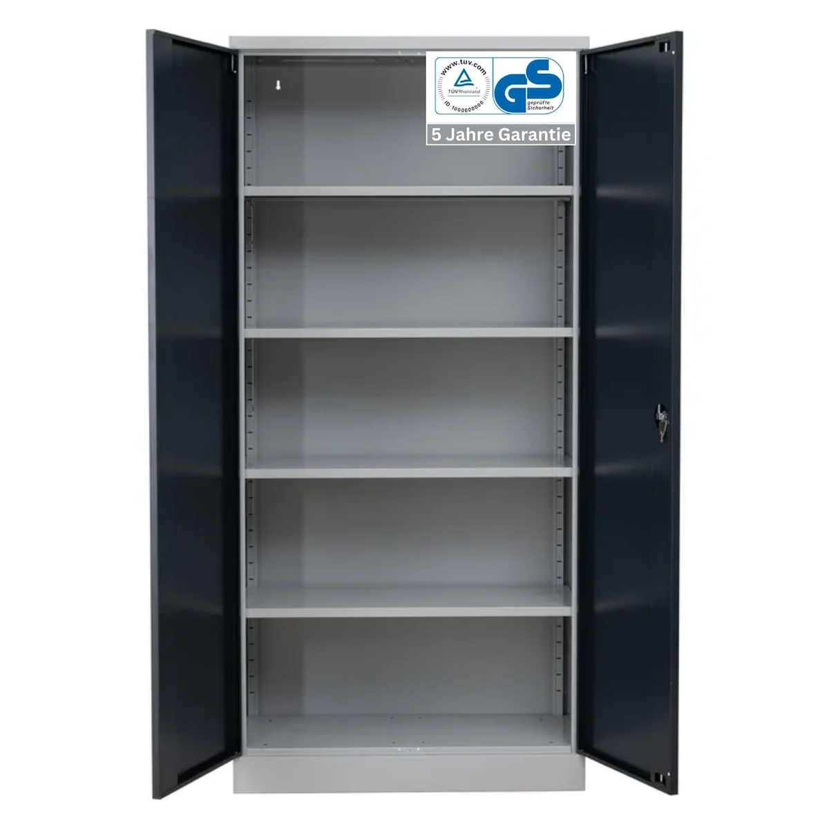 Jan Nowak Abschließbarer Aktenschrank Lagerschrank Mehrzweckschrank Metallschrank 900 x 1850 x 400 mm grau